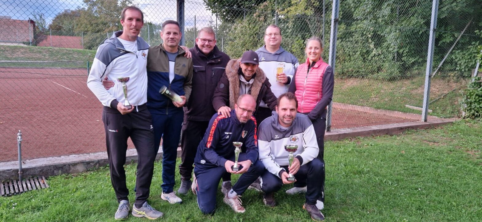 Schon traditionell findet am Ende der Freiluft Saison noch ein Tie Break Turnier für jeden statt. Jeder war mit Freude und Lockerheit am Start – der Spass steht im Vordergrund, aber auch ein Sieger muss gefunden werden und das bringt dann auch einen gewissen Ehrgeiz mit. 9 Spieler fanden sich zumittag um 12 Uhr am Platz ein. Es wurde in 2 Gruppen auf 2 gewonnene Champions Tie Break gespielt. Dann noch Kreuzspiel und kleines und großes Finale. So war der kühle Samstag Nachmittag schön ausgefüllt. Auch ein wenig Alkohol und Schnitzelsemmel fanden Abnehmer. Es waren spannende und lustige Partien am Ende konnten sich aber die Spieler der 1er Mannschaft durchsetzen und sich im Finale Beweisen, aber es war ein schwieriger weg bis dorthin. Man sieht den Mannschaftsgeist, auch bei dem kühlen Wetter fanden ein paar Leute den weg am Platz und feuerten die Spieler an.